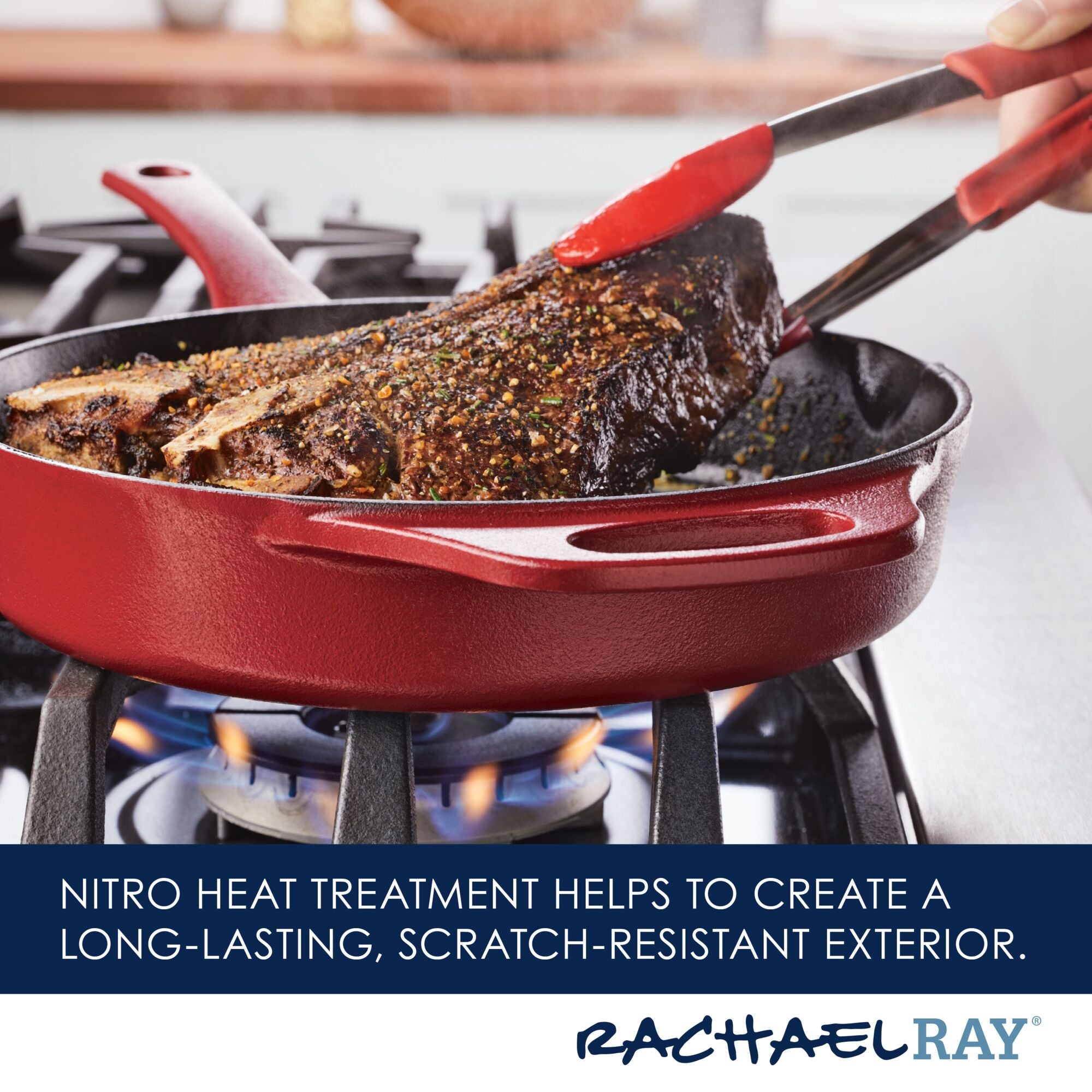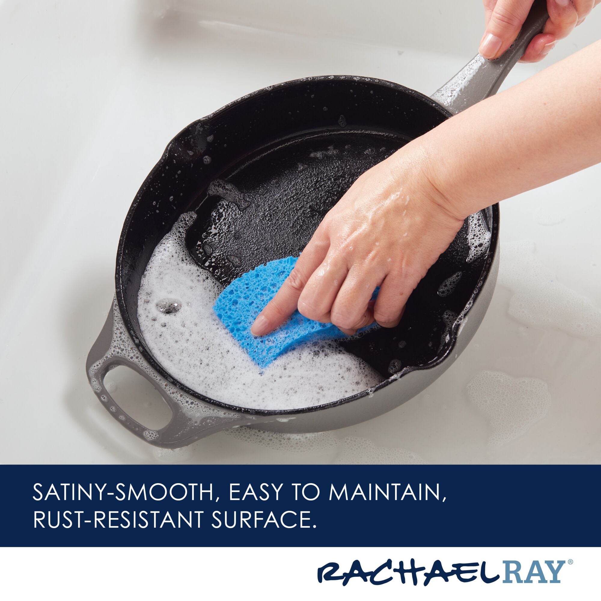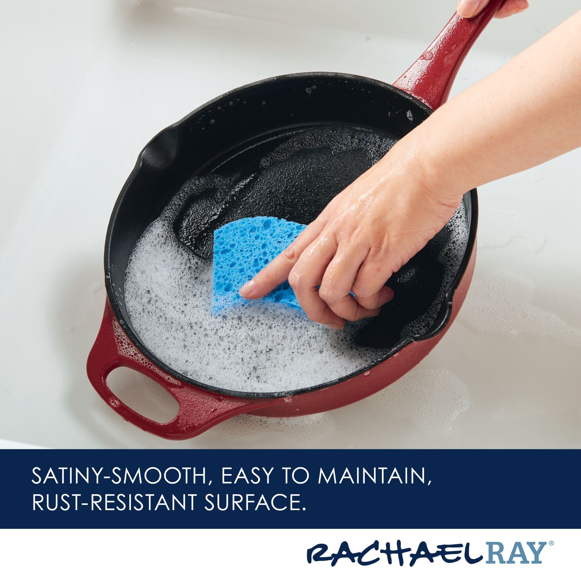 Meet your new kitchen hero! Get incredible cast iron performance that’s easy to maintain with this Rachael Ray NITRO Cast Iron Skillet that delivers the classic durability and performance of cast iron without the hassle of complicated cleaning. A next-generation nitro heat treatment seals and smooths surfaces for amazing. easy-to-use. easy-to-clean cast iron that’s fortified to resist rust. chipping. and staining. Wash it. scrub it. crank it up on the stovetop or in the oven! This amazing 10-inch cast iron frying pan features a helper handle for all of your stove-to-oven recipes and built-in spouts for easy pouring. and the satiny-smooth nitro finish holds brilliant colors to complement any kitchen. Oven safe to a ripping 500°F. induction capable and made to last a lifetime (and look great for a lifetime. too). this durable meal maker is pre-seasoned and ready to deliver. See why cast iron is one of Rachael’s favorite ways to make meals even more delish.