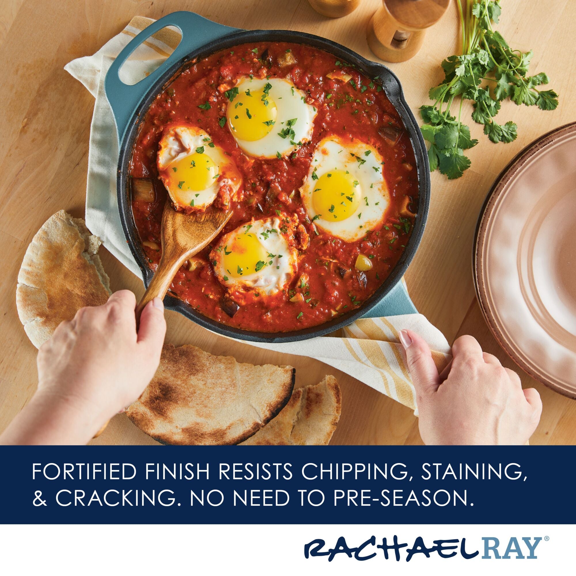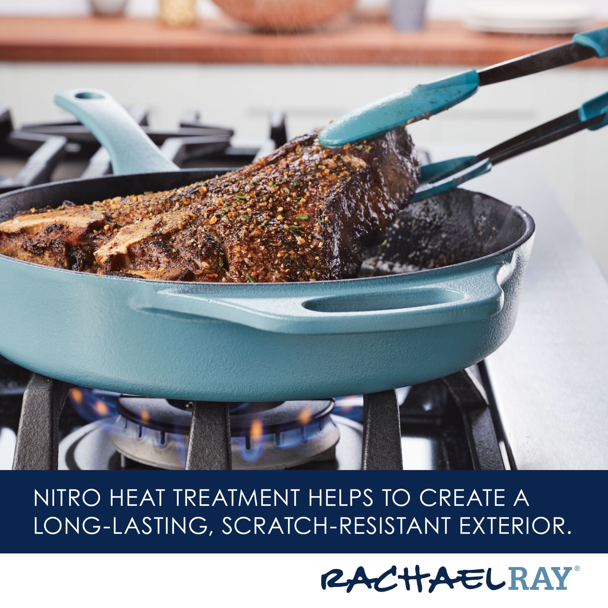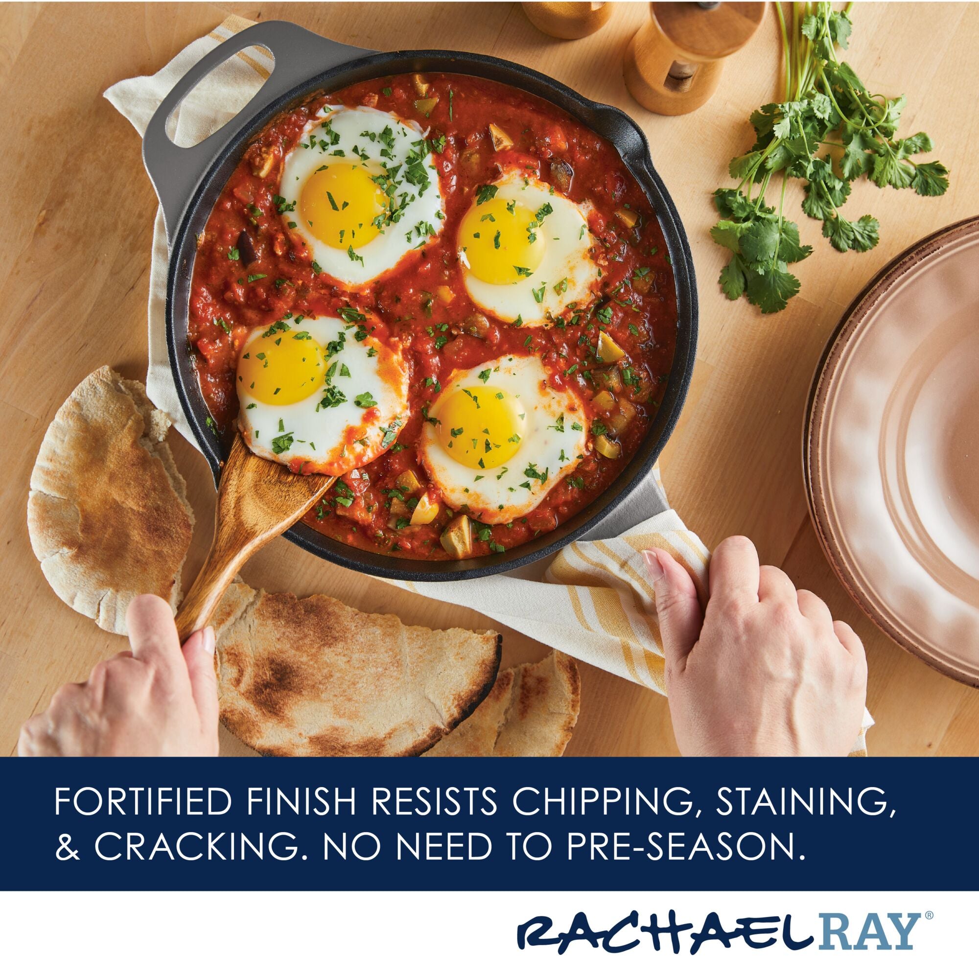 Meet your new kitchen hero! Get incredible cast iron performance that’s easy to maintain with this Rachael Ray NITRO Cast Iron Skillet that delivers the classic durability and performance of cast iron without the hassle of complicated cleaning. A next-generation nitro heat treatment seals and smooths surfaces for amazing. easy-to-use. easy-to-clean cast iron that’s fortified to resist rust. chipping. and staining. Wash it. scrub it. crank it up on the stovetop or in the oven! This amazing 10-inch cast iron frying pan features a helper handle for all of your stove-to-oven recipes and built-in spouts for easy pouring. and the satiny-smooth nitro finish holds brilliant colors to complement any kitchen. Oven safe to a ripping 500°F. induction capable and made to last a lifetime (and look great for a lifetime. too). this durable meal maker is pre-seasoned and ready to deliver. See why cast iron is one of Rachael’s favorite ways to make meals even more delish.