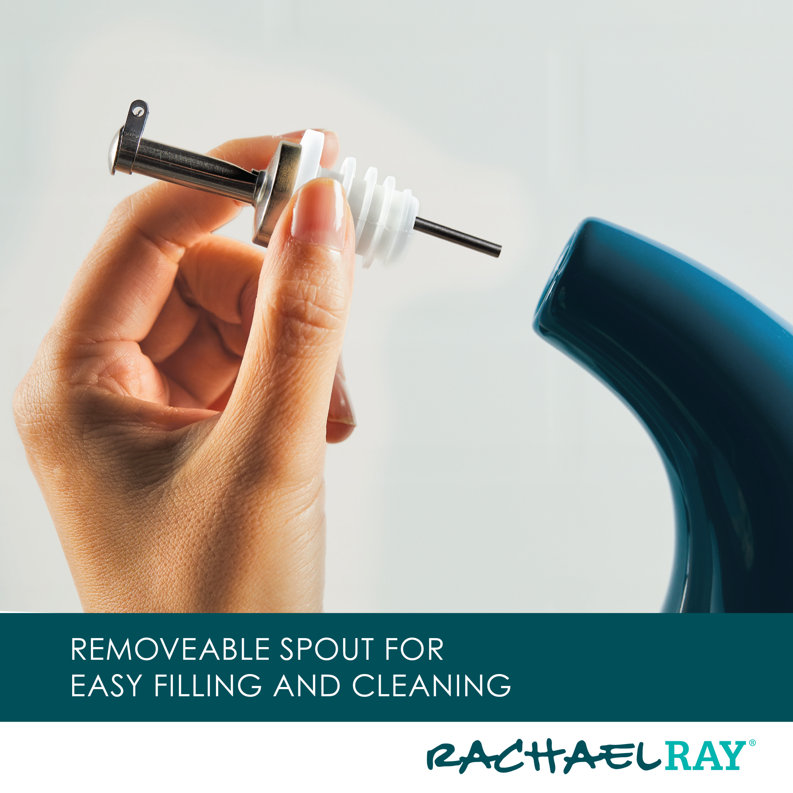 Splash. drizzle and pour on the fun when creating delicious salads. appetizers and more at home with a pair of EVOO bottles from Rachael Ray. Sturdy ceramic cruet bottles protect oils and vinegars from oxidation. are dishwasher safe for convenient cleaning. and have handles integrated into the design that make it a cinch to grab and pour. Great as a bold display right on the countertop or table. this fun oil and vinegar bottle set is the perfect complement to many other items from Rachael Ray. 24-Ounce and 13-Ounce EVOO and vinegar bottles.
