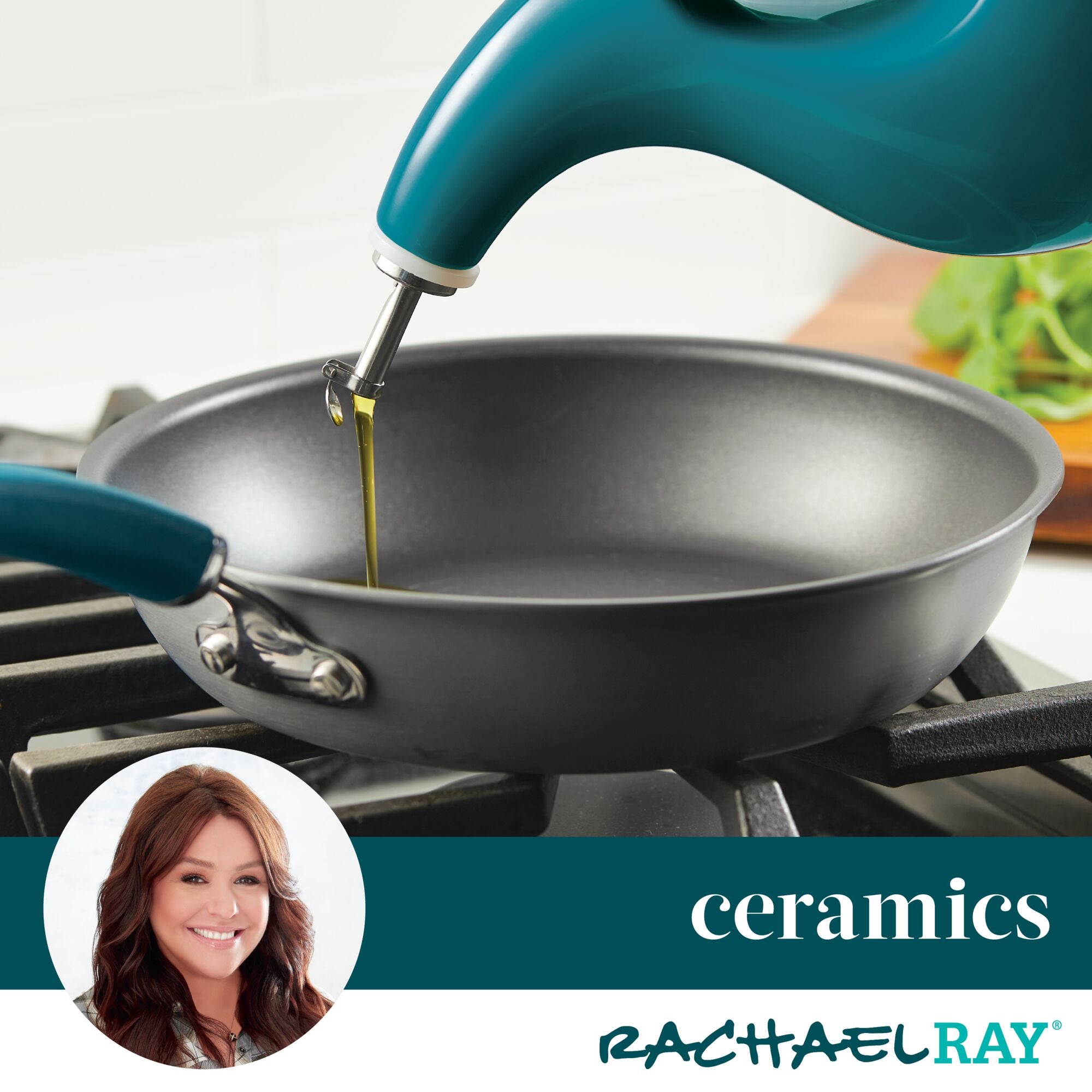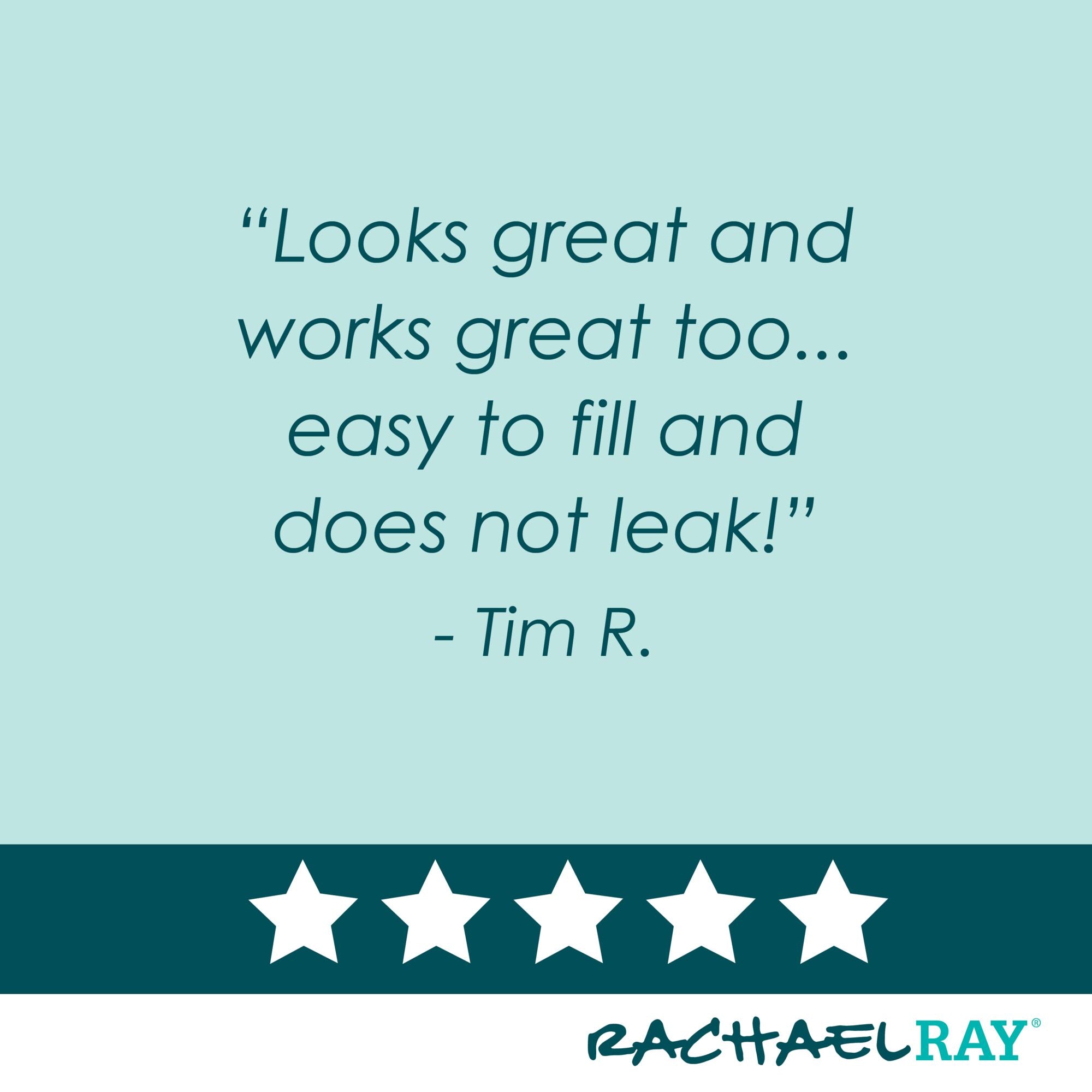 Shake things up in the kitchen with Rach’s iconic EVOO bottle that’s perfect for dispensing oil. vinegar. or other cooking sauces. Featuring a built-in handle for a balanced. easy grip. the bottle has a stainless steel pour spout and is contoured for precision pouring. Dishwasher safe.