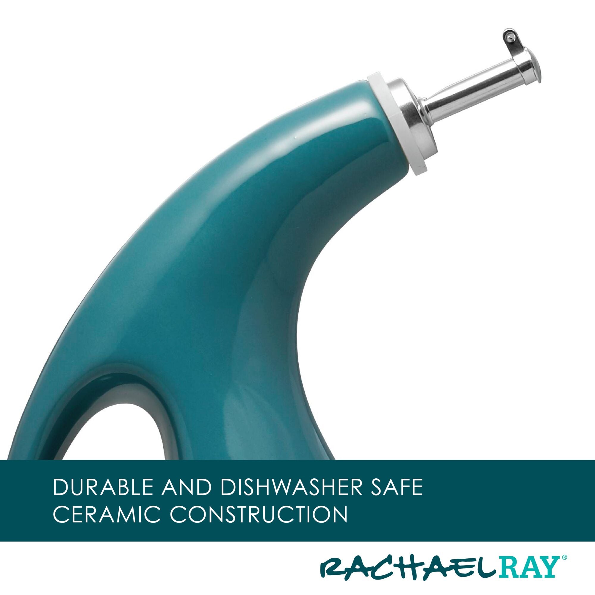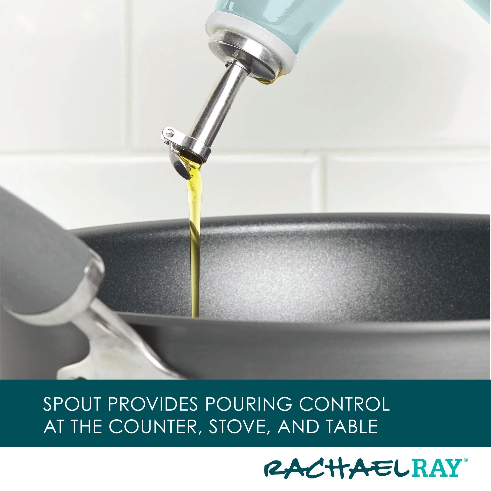 Shake things up in the kitchen with Rach’s iconic EVOO bottle that’s perfect for dispensing oil. vinegar. or other cooking sauces. Featuring a built-in handle for a balanced. easy grip. the bottle has a stainless steel pour spout and is contoured for precision pouring. Dishwasher safe.