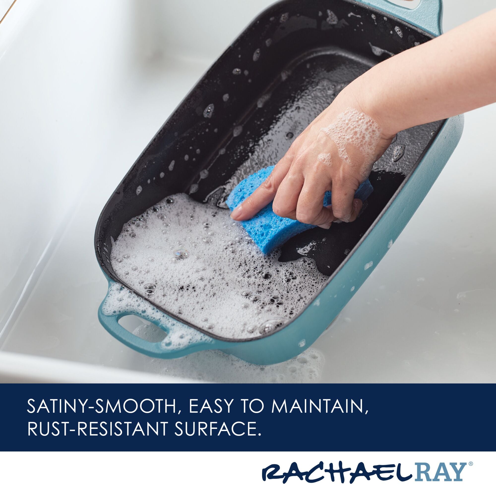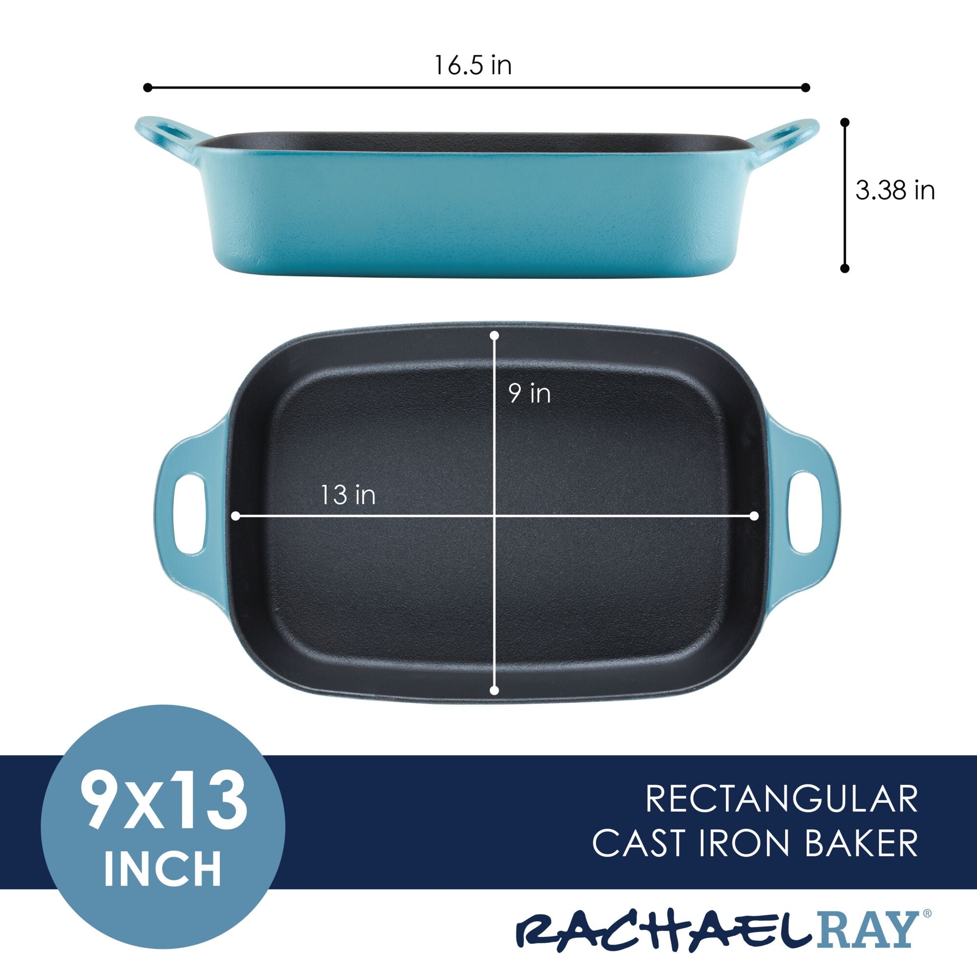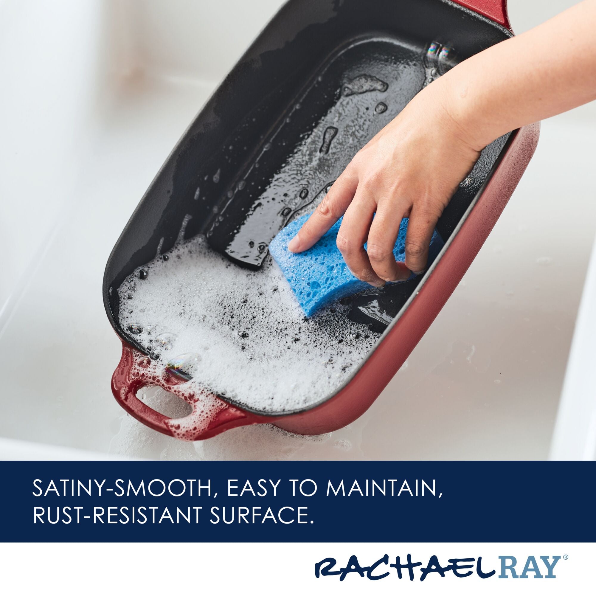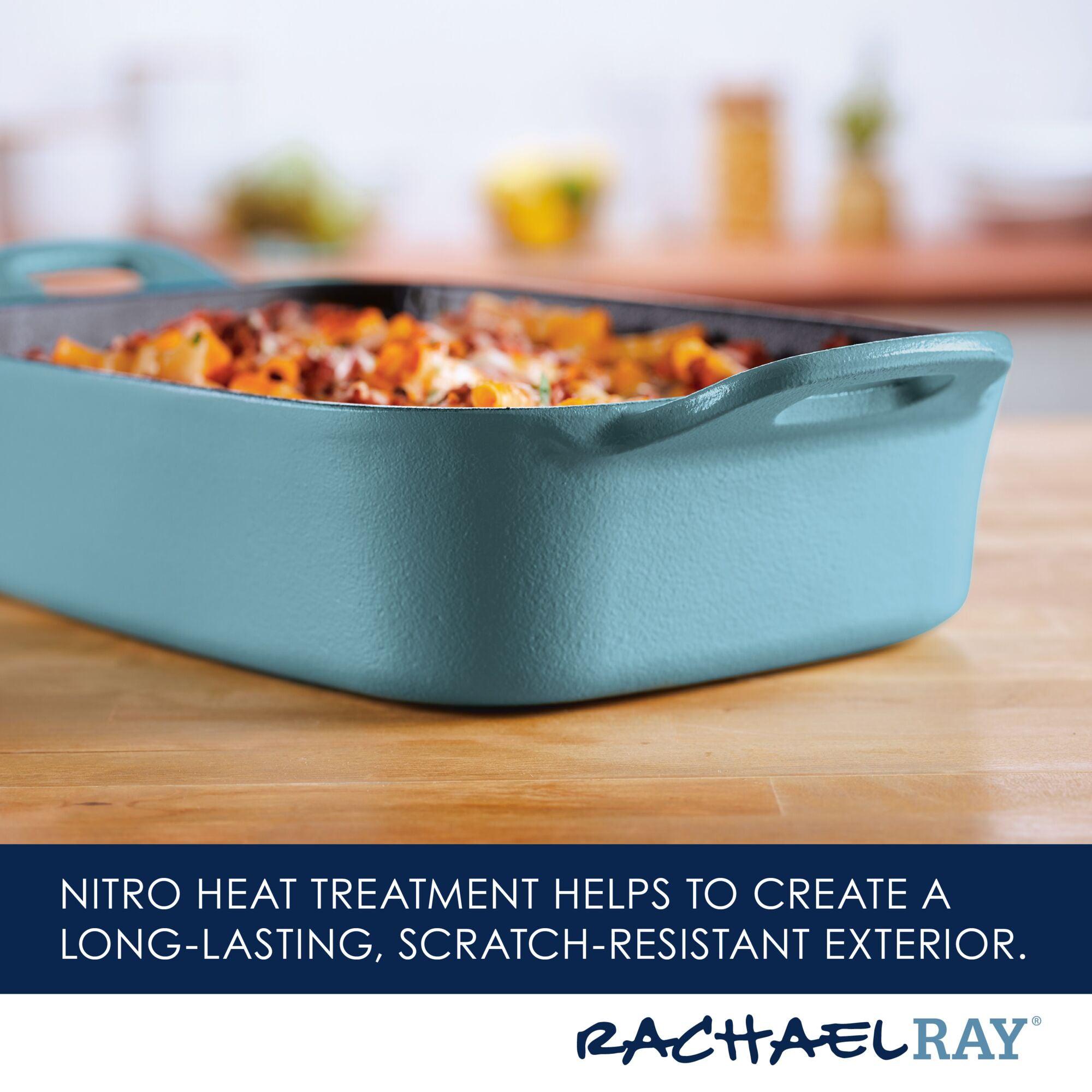 Meet your new kitchen hero! Get incredible cast iron performance that’s easy to maintain with this Rachael Ray NITRO Cast Iron Roasting Pan that delivers the classic durability and performance of cast iron without the hassle of complicated cleaning. making this 9-inch x 13-inch meal maker ideal for use as a lasagna pan. casserole pan. or roaster. A next-generation nitro heat treatment seals and smooths surfaces for amazing. easy-to-use. easy-to-clean cast iron that’s fortified to resist rust. chipping. and staining but still holds brilliant colors to complement any kitchen style. Oven safe to a ripping 500°F. induction capable and made to last a lifetime (and look great for a lifetime. too). this durable cast iron roasting pan is pre-seasoned and ready to deliver. See why cast iron is one of Rachael’s favorite ways to make meals even more delish.