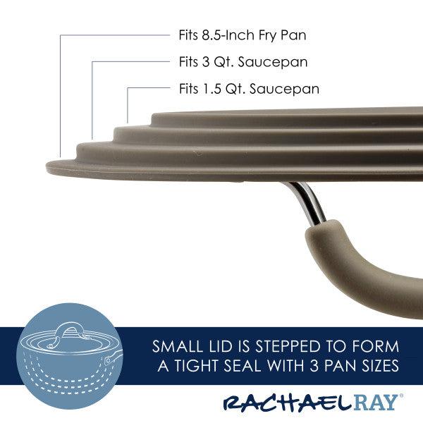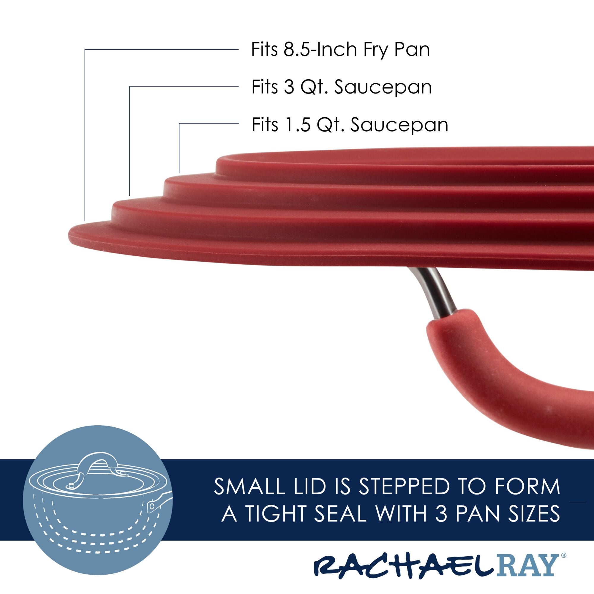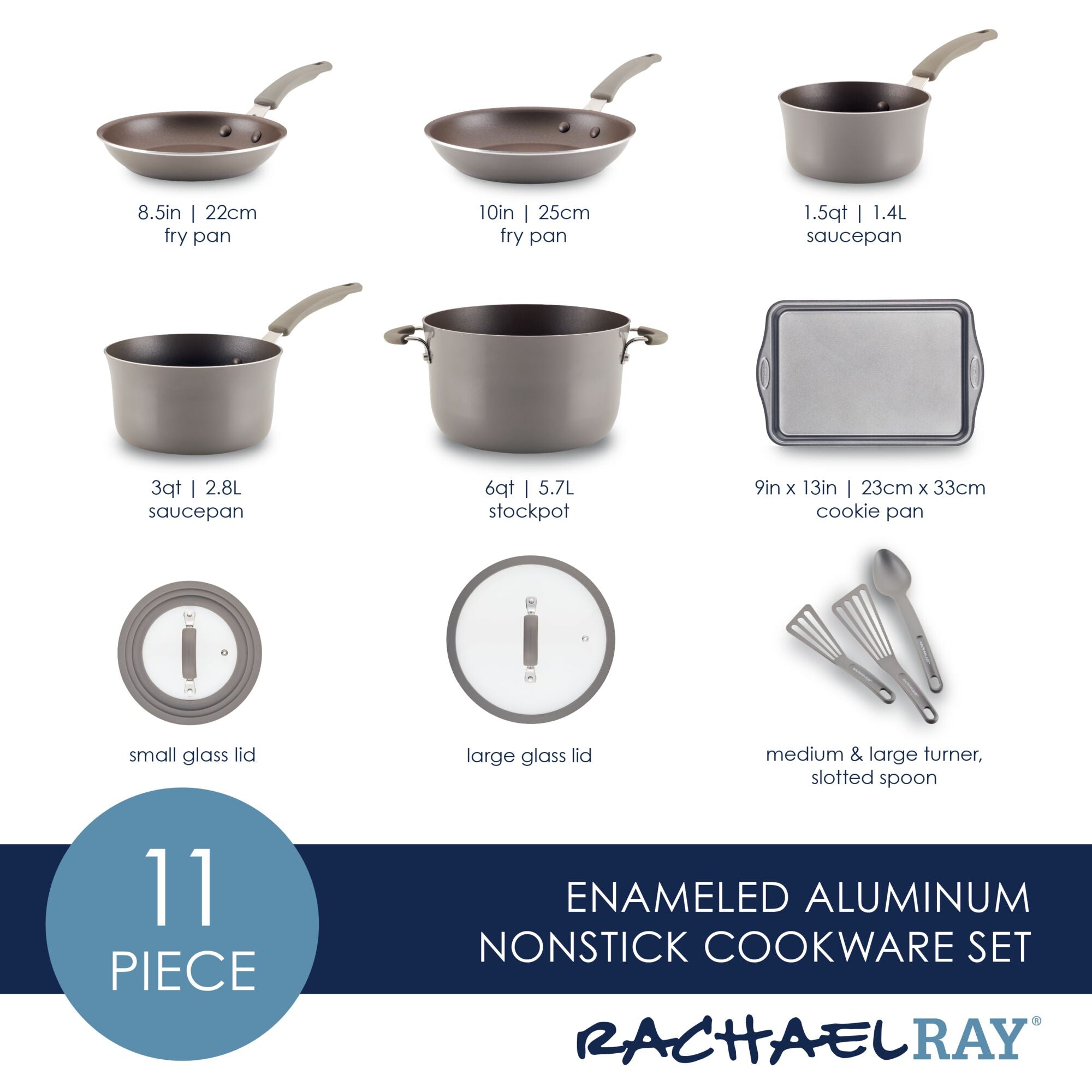 This set of fun and super-functional pots and pans is crafted from thicker gauge aluminum for a luxe and sturdy feel and reliable stovetop performance that heats up quickly and evenly. Featuring universal silicone-rimmed. tempered glass lids with a unique steam vent which provide a soft landing to lock in heat and flavor on your favorite recipes. Less lids. less clutter! The on-trend. contemporary design features a tulip-shaped profile for bigger and wider cooking surfaces that can take on those one pot meals. A new. triple layer nonstick provides the ultimate in scratch resistance and durability. and all of the cookware pieces are oven safe to 400°F. For even more of what you want (and less of what you don’t). reach for Rachael Ray Cook + Create cookware and uplevel your mealtime moments with performance and flair.